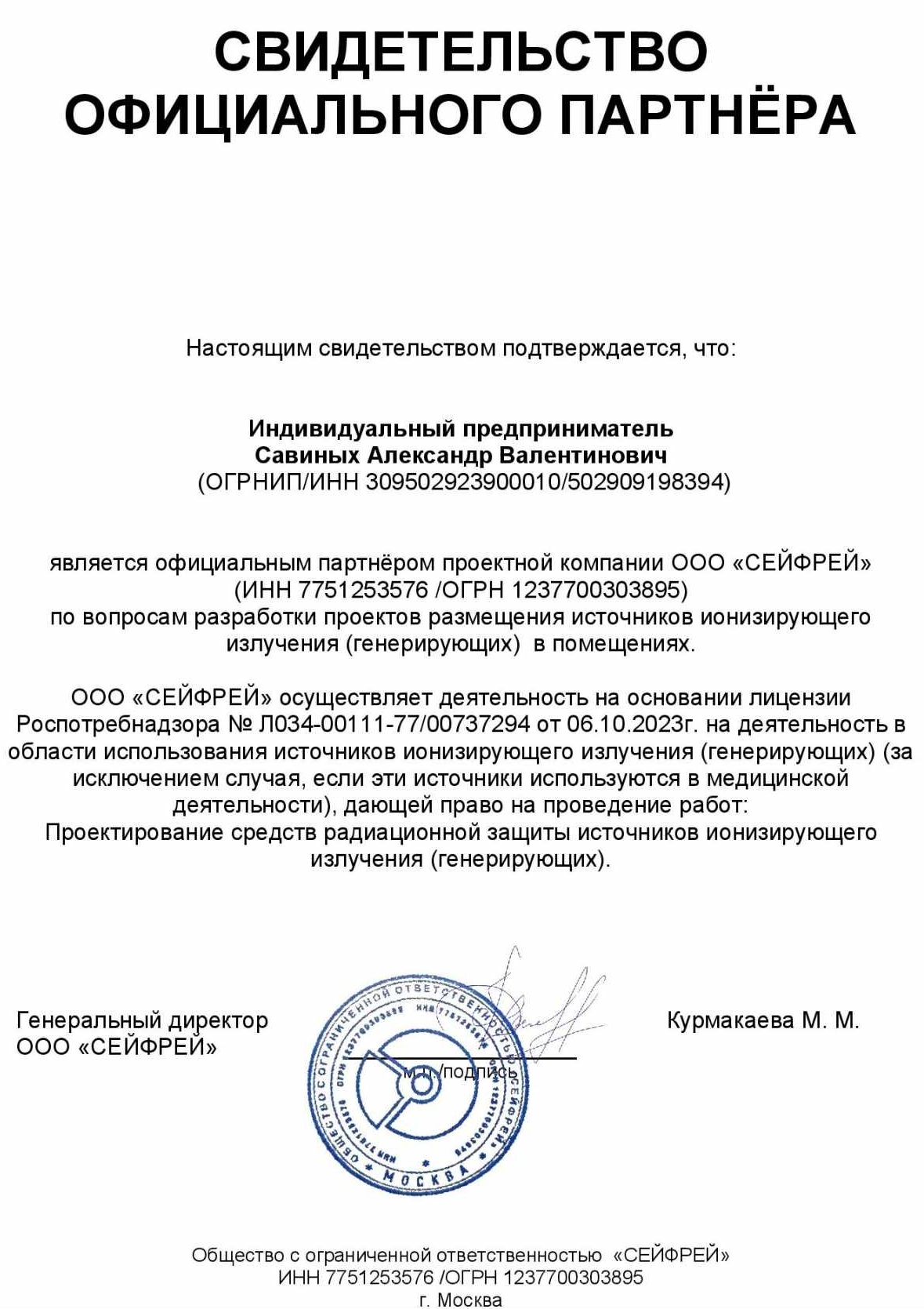 В лице менеджмента компании «Лёгкие документы» мы встретили не только специалистов высокой квалификации и безупречной деловой репутации, но и искренних и доброжелательных людей. В минимальные сроки нам была оказана помощь в получении Лицензии на осуществление деятельности в области использования источников ионизирующего излучения.